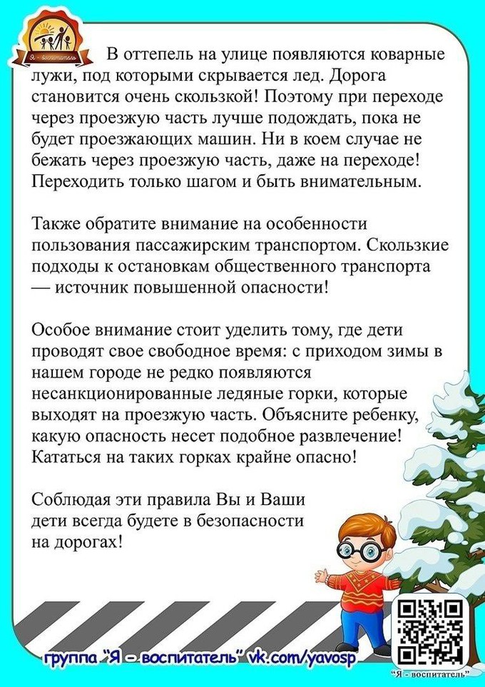 Напоминаем о правилах поведения на дороге в зимний период!