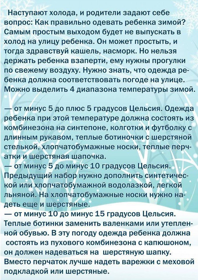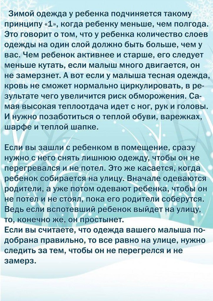 Ежедневные прогулки на свежем воздухе необходимы для физиологического и интеллектуального развития ребёнка. Однако в холодную погоду есть большой риск переохлаждения. Поэтому любой выход на улицу требует особой экипировки. Рассказываем, как одеть ребёнка зимой на прогулку, чтобы он не замёрз и не перегрелся.