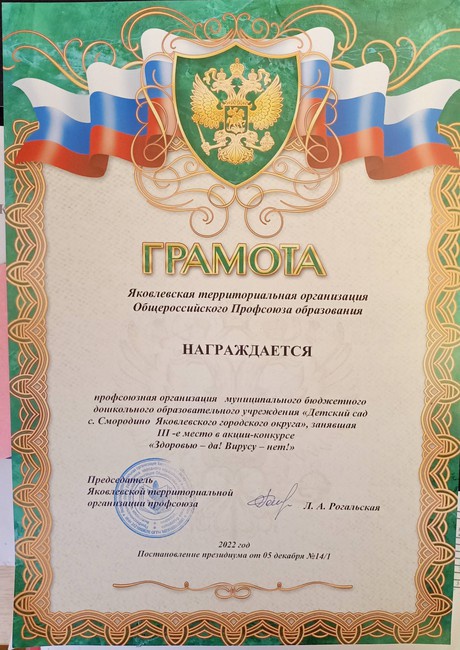 Мы рады приветствовать вас на странице первичной профсоюзной организации МБДОУ «Детский сад села Смородино, Яковлевского района, Белгородской области»