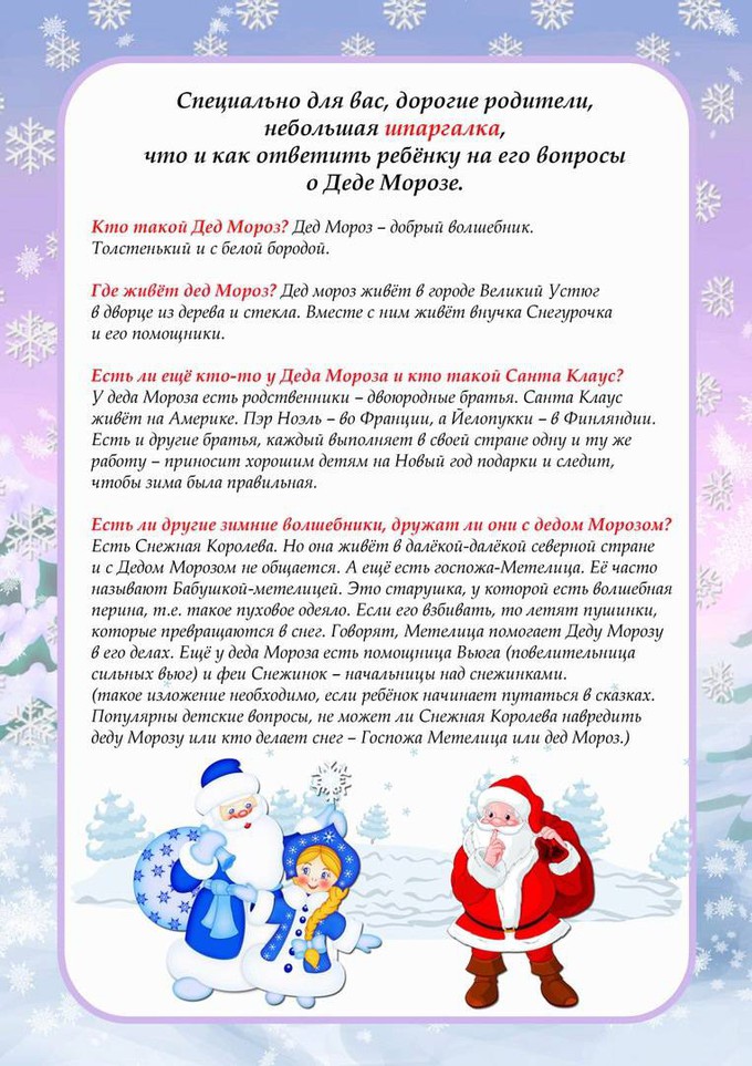 Шпаргалка для родителей