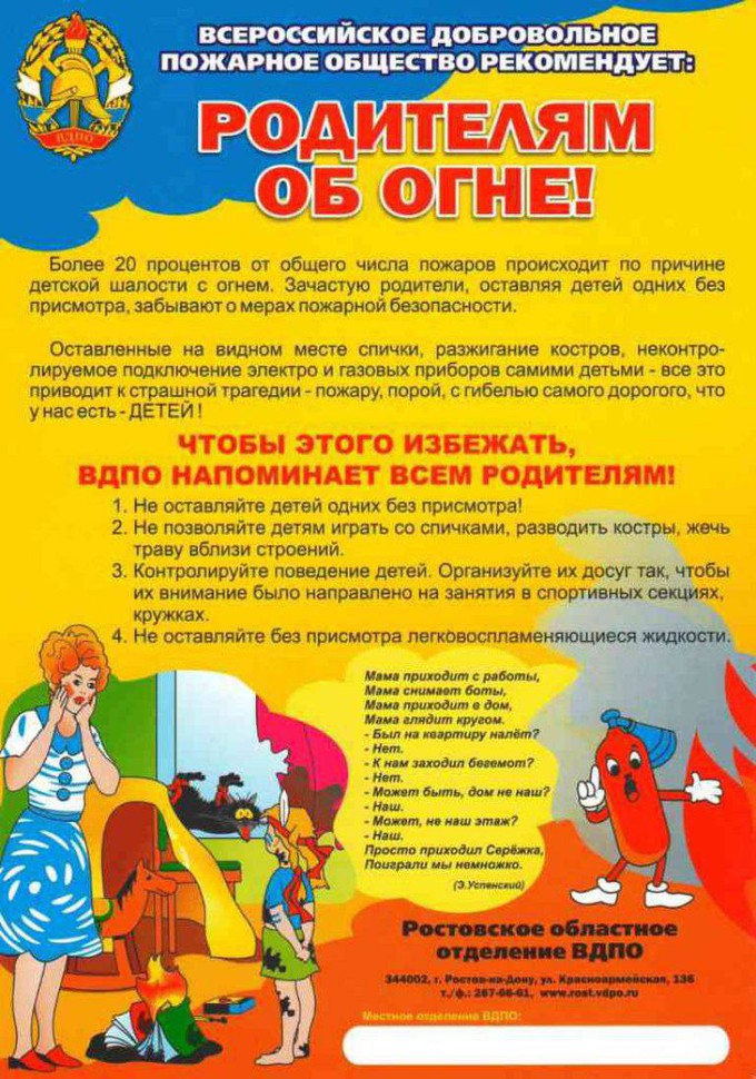 Уважаемые родители! В целях вашей безопасности и безопасности ваших детей, предлагаем вашему вниманию ознакомиться с памятками! Не забывайте с детьми повторять правила пожарной безопасности!