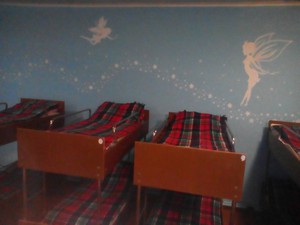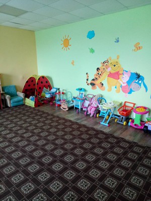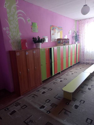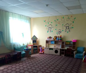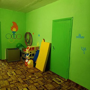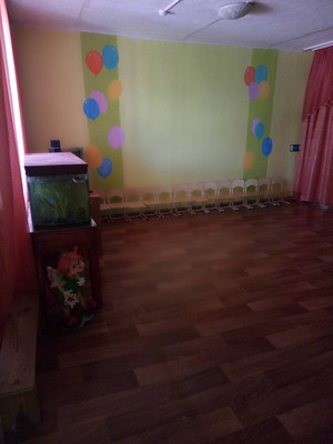 Групповые комнаты раздельные. Имеется общая спальная комната, общая столовая, пищеблок, прачечная, общая раздевалка, приспособленный физкультурный зал, холл- приспособленный музыкальный зал.